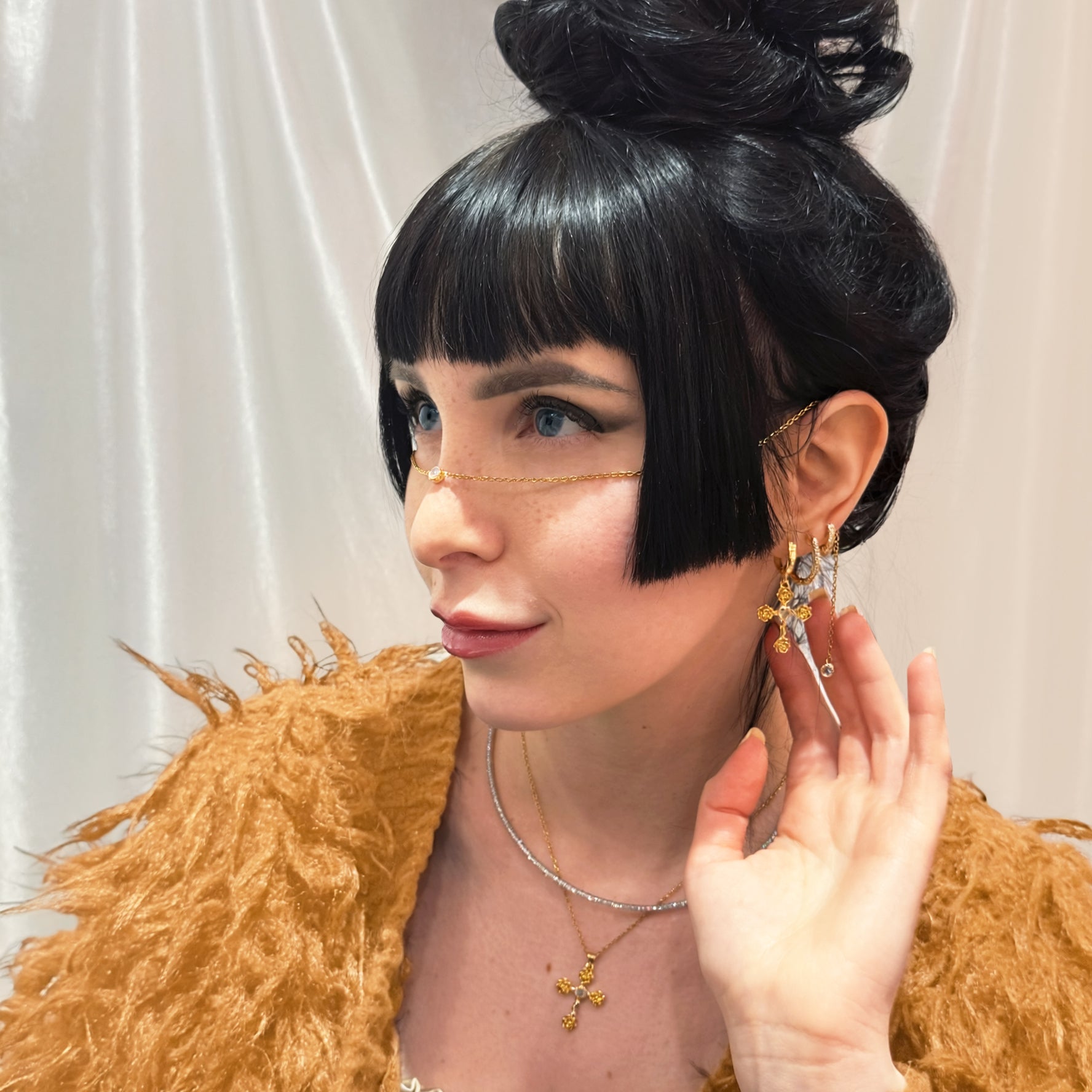 Catena per il viso con Zirconia Cubica taglio tondo, placcata in oro 18k