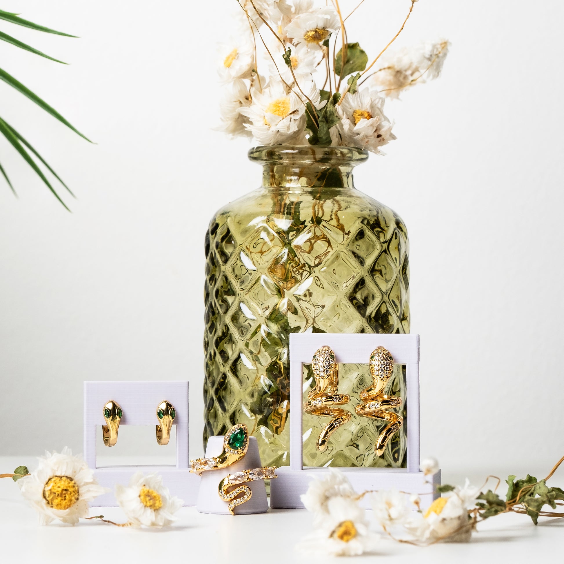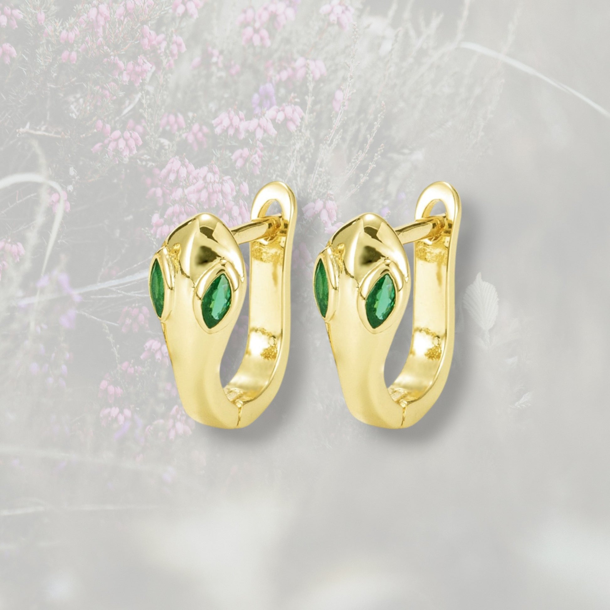 Orecchini a cerchio con Serpente, con Zirconia Cubica verde placcati in oro
