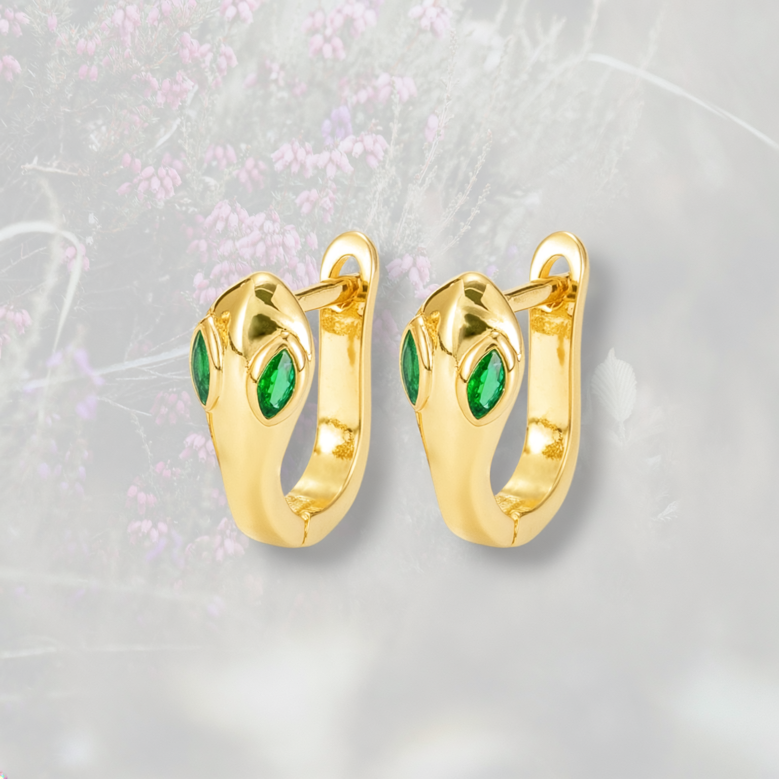 Orecchini a cerchio con Serpente, con Zirconia Cubica verde placcati in oro 18k